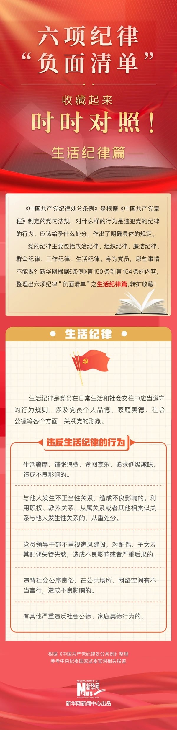 當前,全黨正在開展黨紀學習教育。這次黨紀學習教育明確要聚焦解決一些黨員、干部對黨規(guī)黨紀不上心、不了解、不掌握等問題,組織黨員特別是黨員領導干部認真學習《中國共產(chǎn)黨紀律處分條例》,做到學紀、知紀、明紀、守紀,搞清楚黨的紀律規(guī)矩是什么,弄明白能干什么、不能干什么,把遵規(guī)守紀刻印在心,內(nèi)化為言行準則,進一步強化紀律意識、加強自我約束、提高免疫能力,增強政治定力、紀律定力、道德定力、抵腐定力,始終做到忠誠干凈擔當。今天推出“負面清單”之生活紀律篇,一起收藏學習。